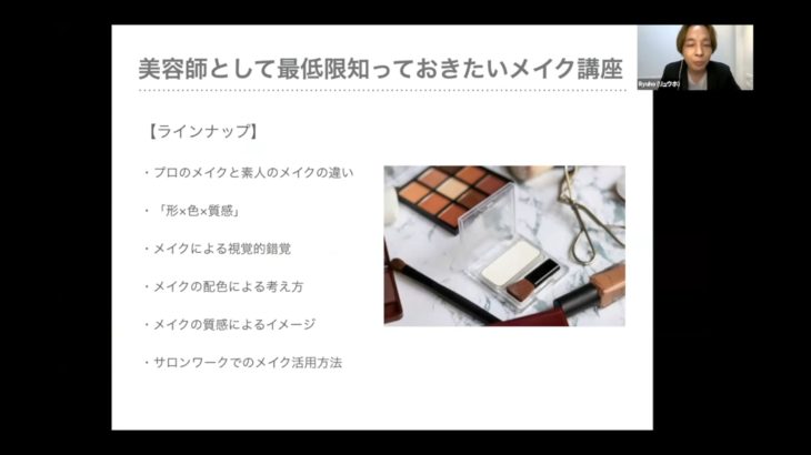 メイクのことを全く知らないのは恥ずかしくないですか? 最低限のメイク知識は頭に叩き込んでおきましょう。 カウンセリングやヘアデザインを提供する上で引き出しが増えます。 実際にお客様にメイクをしなくても、知識だけでも喜んでいただけます。 【対象者】 ・美容師さん ・メイク未経験者 ・メイク初心者 とくに男性美容師さんにおすすめです。 【内容】 ・プロのメイクと素人のメイクの違い ・「形×色×質感」 […]